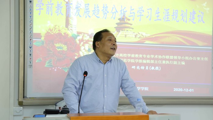熊教授以他生动形象的讲学方式,向同学们层层剖析了新时代学前教育的发展趋势,并提出了许多独到的见解。讲授内容与主题紧紧相扣,分析逻辑缜密,充分联系实际,引发了老师和同学们对学前教育的深度思考。