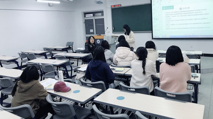 1月10日晚上,学院首先在钉钉群举行毕业论文开题报告会。本次在线开题分3组进行,由各小组组长主持,2018级秘书辅助开展。共6名教师参与了线上开题指导,线上开题学生29名。1月11日上午和晚上,线下毕业论文开题报告会分别在旭日大楼举行。此次线下会议分6组进行,每组学生6~9名,共12名学院教师参与了线下开题指导。开题报告会上,学生们围绕选题缘由、研究意义、研究思路与研究内容、研究方法等方面进行阐述。各评审教师根据其内容提出针对性的问题,帮助学生明确毕业论文的任务以及相关学术训练,深度检视每位学生的论文题目、内容、研究方法及论文开展的可行性,使其能够完成高质量的论文研究。