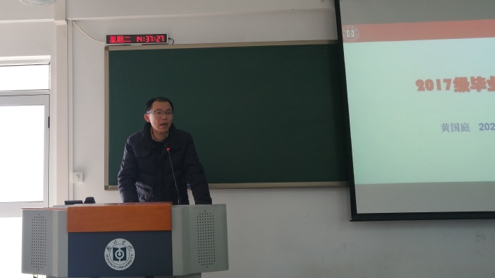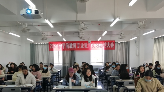 在主持人宣布大会开始后,首先由我院系主任黄国庭老师介绍实习概况。黄国庭老师介绍了2021届学生实习所在的园所及相关情况,同时指出让我院学生到一线城市优质幼儿园实习的意义共有四点,分别是增强学生们在一线城市求职的自信心;提高学生们对学前教育专业的认同感;帮助学生们树立高的工作标准,更加严格要求自己;让更多的幼儿园看到惠州学院学生的风采,建立更多优质的实习基地。