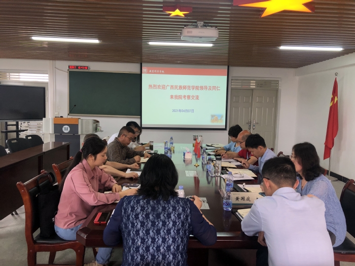 4月7日上午,广西民族师范学院教育科学学院党委书记周淼泉教授一行来院考察交流,并在旭日大楼621会议室开展座谈。教育科学学院领导班子成员、各系主任及专业负责人参加了座谈会。