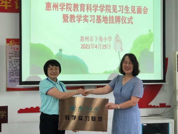 4月19日上午,教育科学学院党总支书记谢伟强、副院长谢桂新分别率队到惠州市合生实验学校、下角小学参加2019级小学教育专业学生见习见面会,并与两所小学举行了教学实习基地签约挂牌仪式。