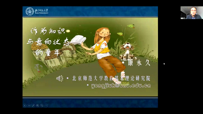 4月22日上午,北京师范大学康永久教授应邀在“东江大讲堂?丰湖教育论坛讲座”作《作为知识与意向状态的童年》云讲座。我校各二级学院分管教学和研究生工作的副院长、全校课程教学论的任课教师、教育科学院教师代表聆听了讲座。讲座由教育科学院院长陈伟教授主持。