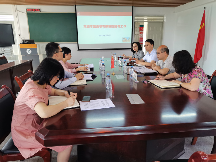 谢伟强书记首先感谢史副处长和钟科长百忙之中来我院指导“互联网+”大学生创新创业大赛,简要介绍了目前学院对大赛的相关准备工作,学院高度重视,以参与大赛为抓手,推动创新创业教育与专业教育深度融合,提高学生参赛覆盖率。但由于教育科学学院所设专业偏属文科性质,无论是教师还是学生参与该大赛均存在一些短板,因此,希望学生处领导传经送宝,多提宝贵建议,以提高我院参赛质量。