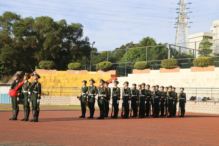 6点50分,升旗仪式正式开始。惠州学院国旗护卫队身着升旗礼服,迈着庄严而整齐的步伐,护卫着鲜艳的五星红旗,走向升旗台。国歌奏响,升旗手振臂一挥,鲜艳的五星红旗迎风招展,伴着清晨的阳光冉冉升起,全体人员庄严肃立,面向国旗行注目礼。随后,学院党总支负责人谢伟强书记发表国旗下讲话,他结合习近平总书记系列重要讲话精神,主要从习近平总书记立足中国共产党百年华诞的重大时刻和“两个一百年”奋斗目标历史交汇的关键节点开展党史学习的重大意义等方面进行强调。同时也简要回顾了学院2020年以来在学生和党建等方面取得的主要成绩,并对在场师生提出了期望和建议:一是要坚定理想信念;二是要担当起社会责任;三是要牢固树立纪律意识和规则意识;四是建设节约环保型校园。最后,他强调了当前疫情防控的重要性以及电信诈骗的严峻局势,希望全体师生严格遵守疫情防控制度以及谨防诈骗。