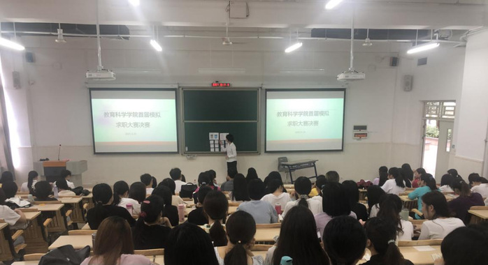 为使毕业生做好职前准备,提高就业竞争力,实现毕业生更高质量、更充分就业,教育科学学院于5月15日上午8:30在11-105教室顺利举办了首届模拟求职大赛决赛,担任此次比赛的评委分别是我院党总支书记谢伟强、广州黄浦区王昕园长、系主任黄国庭、辅导员张磊及辅导员范红依,共有10名来自17级、18级学前教育专业的学生进入本次决赛。