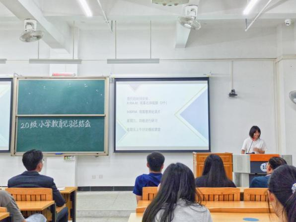 2021年6月6日晚,教育科学学院2020级小学教育专业第二次见习(研习)总结会在旭日楼101教室顺利举行。教育科学学院小学教育系副主任张铮老师、金艳老师、常攀攀老师、余中根老师及2020级全体同学参加会议。会议由江力同学主持。