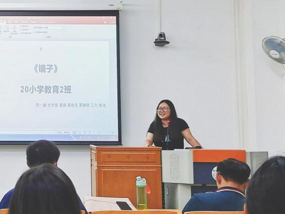 3班的第一组代表林嘉惠同学分享观名师课堂的收获启发,着重提到情景教学。分析所学专业理论知识“五育并举”在名师课堂的体现,强调素质教育对培养创新人才的重要性。分享收获和启发,老师即要教书又要育人,把学生作为教育活动和发展的主题,永远饱含激情,拥抱教育事业。