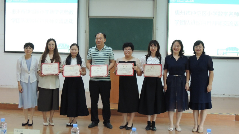活动伊始,谢桂新副院长代表教育科学学院、小学教育系和个人向来自仲恺区小学数学名师教学团队的各位名师们表示热烈的欢迎、衷心感谢和敬意,指出此次活动具有三个“一”的特点:参加活动的学生是学院第一届小学教育专业公费定向师范生、参加活动的教学团队是第一批进入学院的名师教学团队、本次活动是小学教育专业第一次举行的拜师交流活动,希望学生能珍惜这次机会,主动向各位名师学习。最后谢桂新副院长与陈国钦主任为教学团队的五位老师颁发校外实践指导老师的聘书。学生代表缪芊烨对学院老师和教学团队名师们表示衷心的感谢,并表示会认真向各位名师们学习。罗红教授对惠州市仲恺区小学数学名师教学团队能够进入到校园、进入到小学教育专业的课堂中来表示热烈的欢迎和衷心的感谢,希望小学教育专业学生能够抓住机会向师傅们学习真本领。