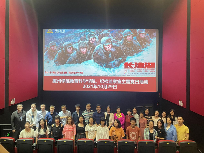 为进一步丰富党史学习教育内容,深入推进党史学习教育,缅怀革命先烈,传承红色基因,弘扬爱国主义精神,10月29日下午,德赢vwin8868官网、纪检监察室举行“追忆抗美援朝,弘扬革命精神”主题党日活动,组织师生集中观看爱国主题电影《长津湖》。