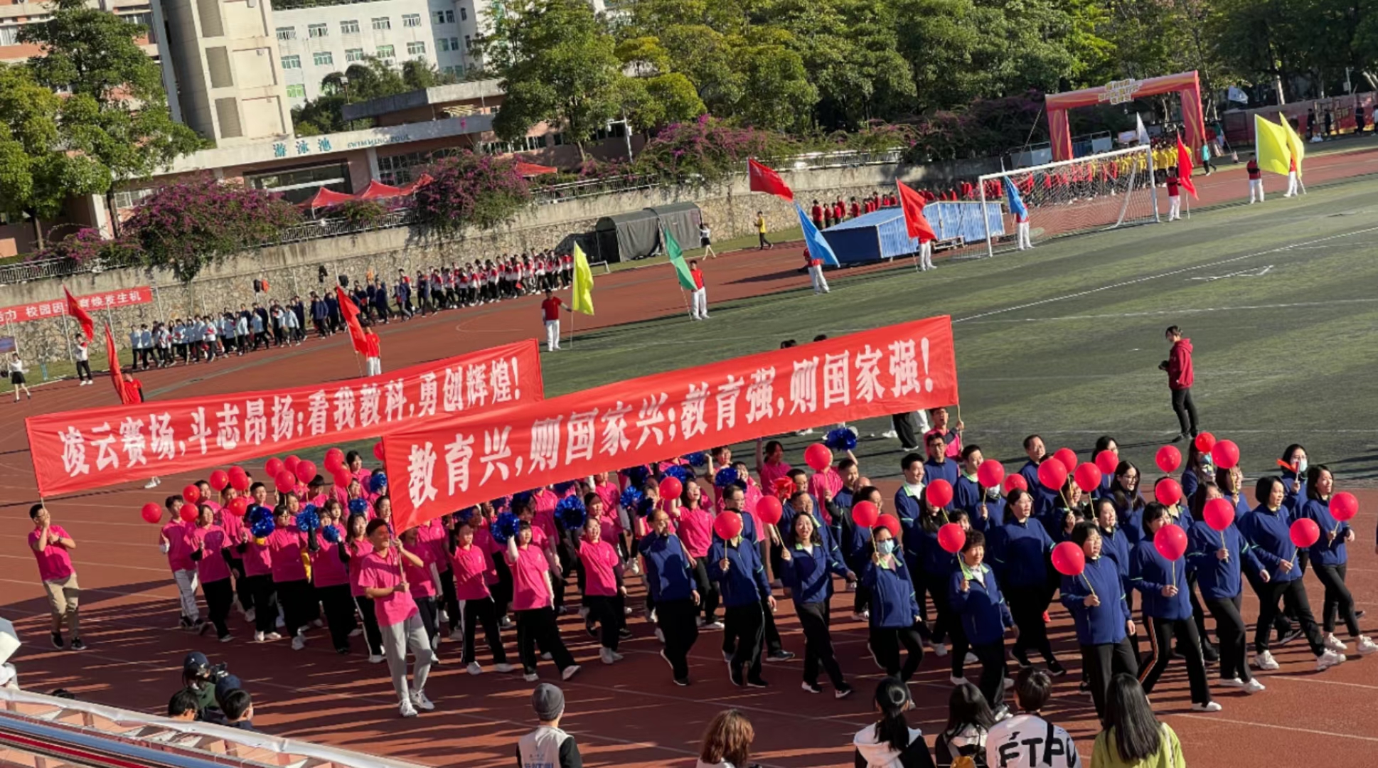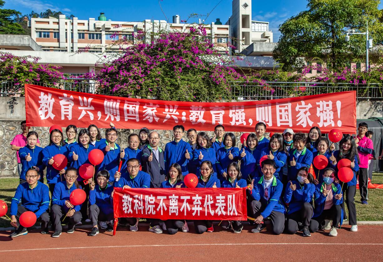 在开幕式上,“凌云赛场,斗志昂扬;看我教科,勇创辉煌”,宏亮而齐整的口号响彻赛场,教科院方阵的老师和同学们面带笑容,昂首挺胸,器宇轩昂的走过主席台。