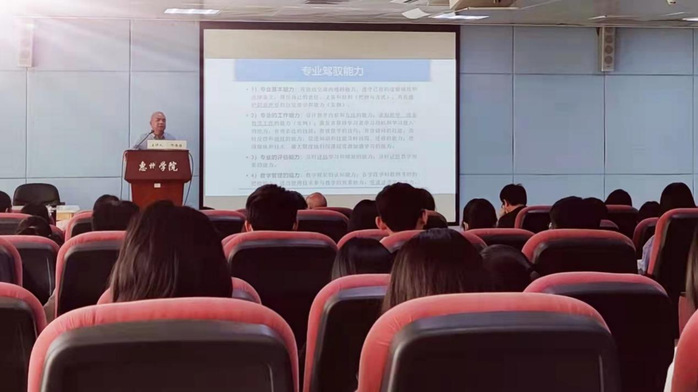 邓伟强老师从“教师必须具备有过硬的驾驭能力——高智商”“教师必须有独特的教育情怀——好情商”“教师必须有健康的心理素质——硬逆商”三个方面对教师专业发展进行了阐述,并勉励小学教育专业学生在职前学习中抓住机会锻炼自己,在岗位中尽职尽责为教育事业做努力。