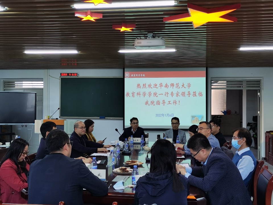 1月6日下午,教育科学学院在旭日楼621会议室召开教育硕士专业学位授权点申报推进工作交流座谈会,华南师范大学教育科学学院一行专家莅临我院指导工作。出席此次研讨会的领导与专家有郑文副校长、教育科学学院陈伟院长、谢伟强书记,华南师范大学教育科学学院院长李盛兵教授、副院长葛新斌教授、曾文婕教授、党委副书记李海云、工会主席齐梅教授等。另外,惠州学院文学与传媒学院、外国语学院、数学与统计学院等申硕学位点负责人、科研处、研究生处(合署)副处长以及本院专业教师参加会议。