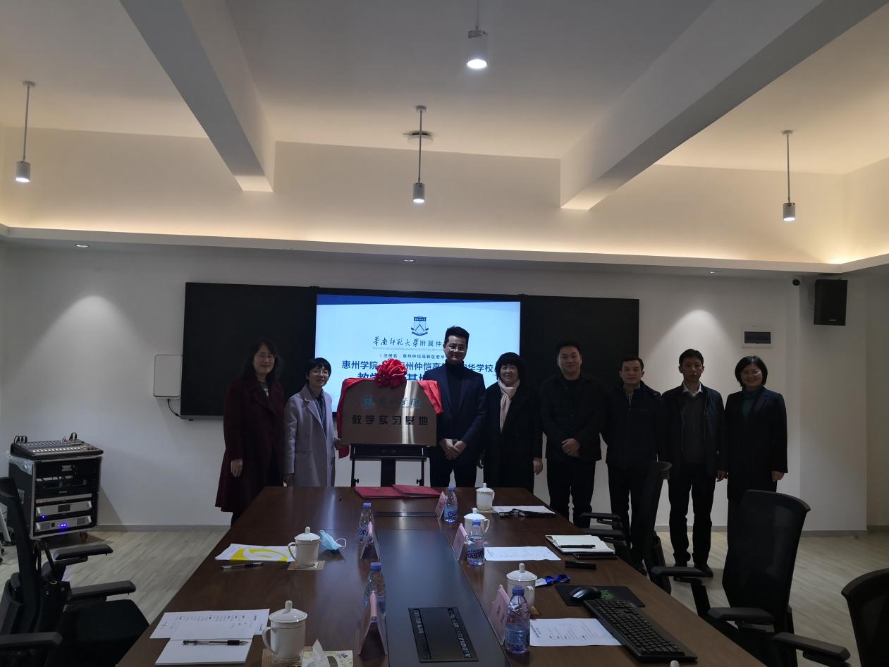 2022年1月18日上午,惠州学院教务处副处长陈国钦、教育科学学院副院长谢桂新、教育科学学院小学教育系主任金艳在惠州市仲恺高新区宏华学校(原华南师范大学附属仲恺学校)进行惠州学院教学实践基地签约授牌仪式。惠州市仲恺高新区宏华学校执行校长陈武、副校长王英华及学校行政团队成员出席了签约及授牌仪式。