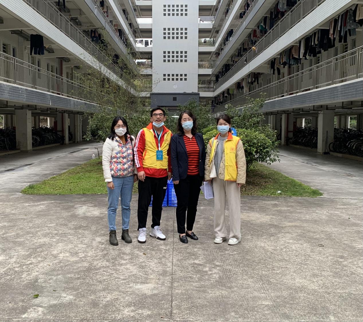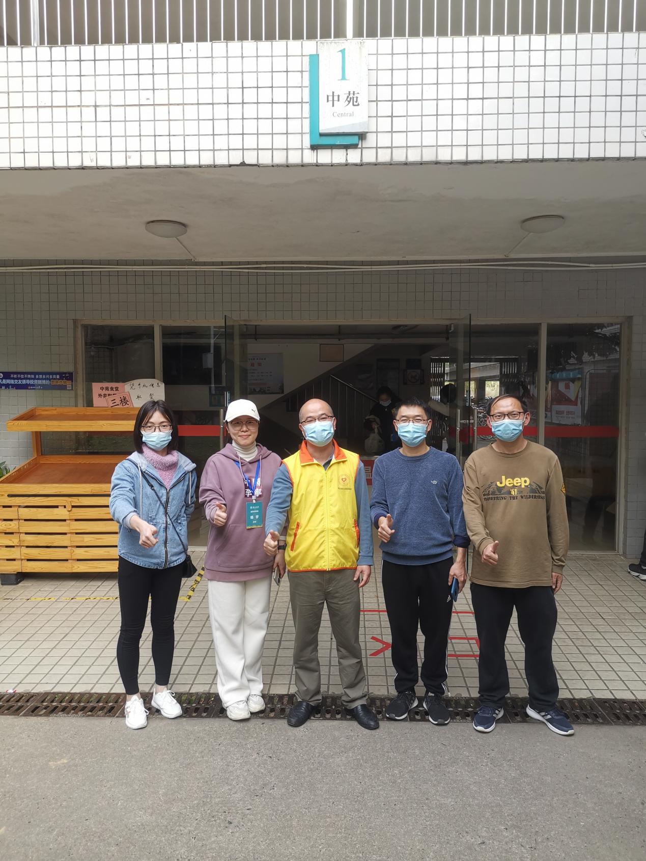 在校园疫情防控这个特殊时期,我院党总支迅速响应、积极组织,通过研判,决定在教工党支部当中组建起一支防疫工作志愿者队伍。胡娇老师也在第一时间安排了疫情防控工作值班表,以协助学校的防疫工作。我院教工党员响应号召,冲锋在前,踊跃投入到校园封控管理志愿服务中,发挥了党组织战斗堡垒和党员先锋模范作用,有序有力推进疫情防控,践行“不忘初心、牢记使命”庄严承诺。在2月27日至3月1日“三天两检”当中,我院有将近二十位教工党员参与到封控宿舍配餐以及师生核酸检测中。在教工党员的影响和带领下,多名入党积极分子和普通教师也积极参与志愿服务。特别是党员教师谢桂新、肖崇好、余中根、王晓平,以及非党员教师黄国庭、李航等,他们每天来得早、效率高、参与学生餐食分配工作次数多,身体力行地协助学校防疫工作,顺利完成了南苑8栋和中苑1栋69个封控宿舍354名学生的餐食配送。很大程度上分担了工作人员的压力与负担,推动了学校“三天两检”工作的顺利开展。
