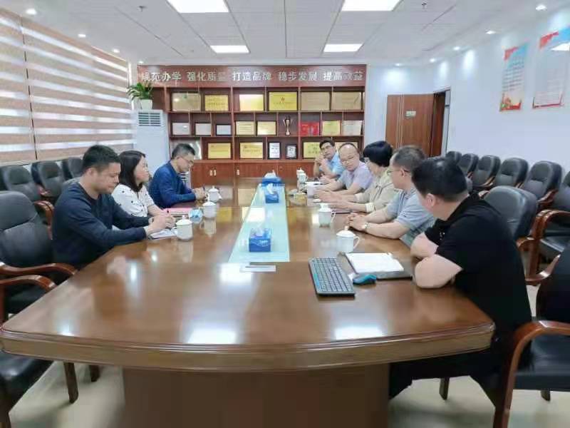最后,彭夏婷、钟明新、蔡国栋一行三人在学院领导班子的陪同下还前往继续教育学院与肖福玲院长、邓伟浩副院长等一起,就教师开展“双进双培”等合作内容进行讨论交流,并实地考察了有关培训场地。