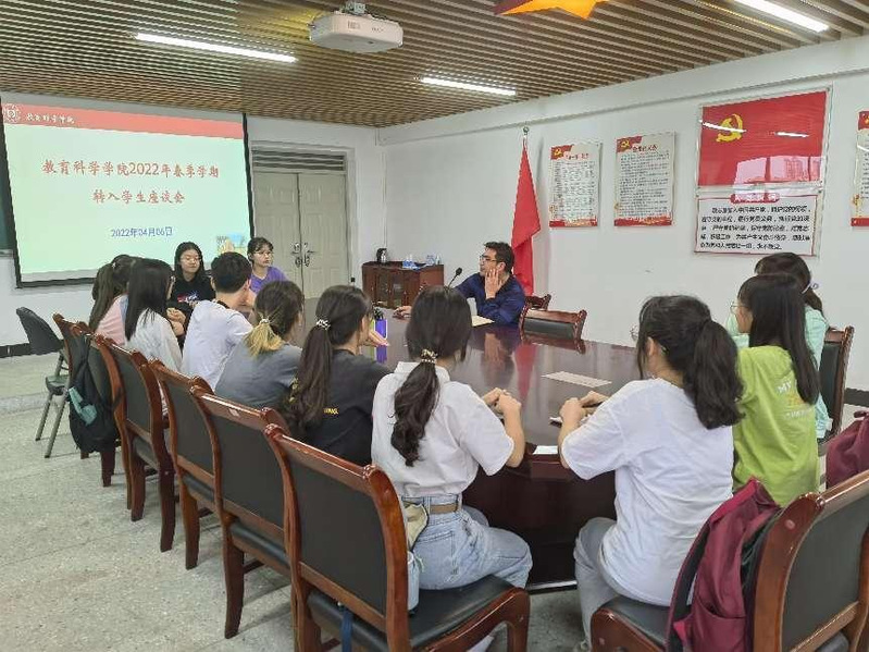 为帮助转专业学生尽快适应新的学习环境、更好的开展学习生活,教育科学学院于2022年4月6日召开2022年度春季学期转入学生座谈会。党总支副书记刘华、辅导员老师及12名转入学生参加了此次座谈会。