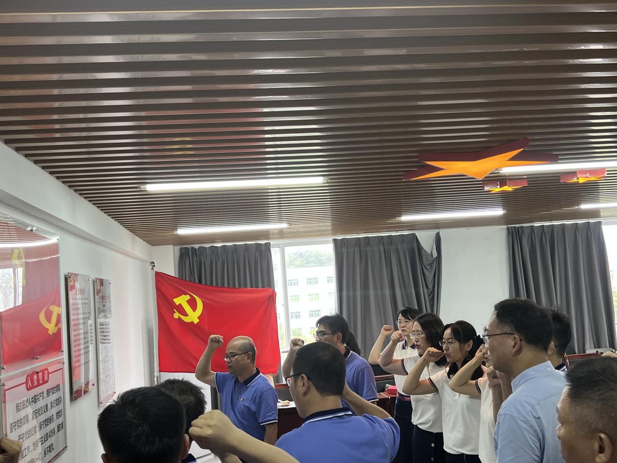 再次,与会党员同志在谢伟强的带领下,面对党旗,重温入党誓词,以此勉励大家发挥党员先锋模范作用,在工作中不断创先争优、发光发热。