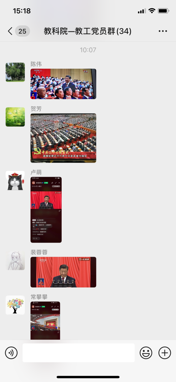 除了在621会议室线下观看“二十大”直播的参会人员外,学院的其他师生党员也分别在家线上收看了开幕式。观看二十大开幕会后,广大师生反响热烈、倍受鼓舞。大家一致认为,要不忘初心、牢记使命,高举中国特色社会主义伟大旗帜,全面贯彻习近平新时代中国特色社会主义思想,自觉担负起“为党育人、为国育才”的时代使命,汲取奋进力量,在新的赶考之路上继续创造令人刮目相看的新奇迹。