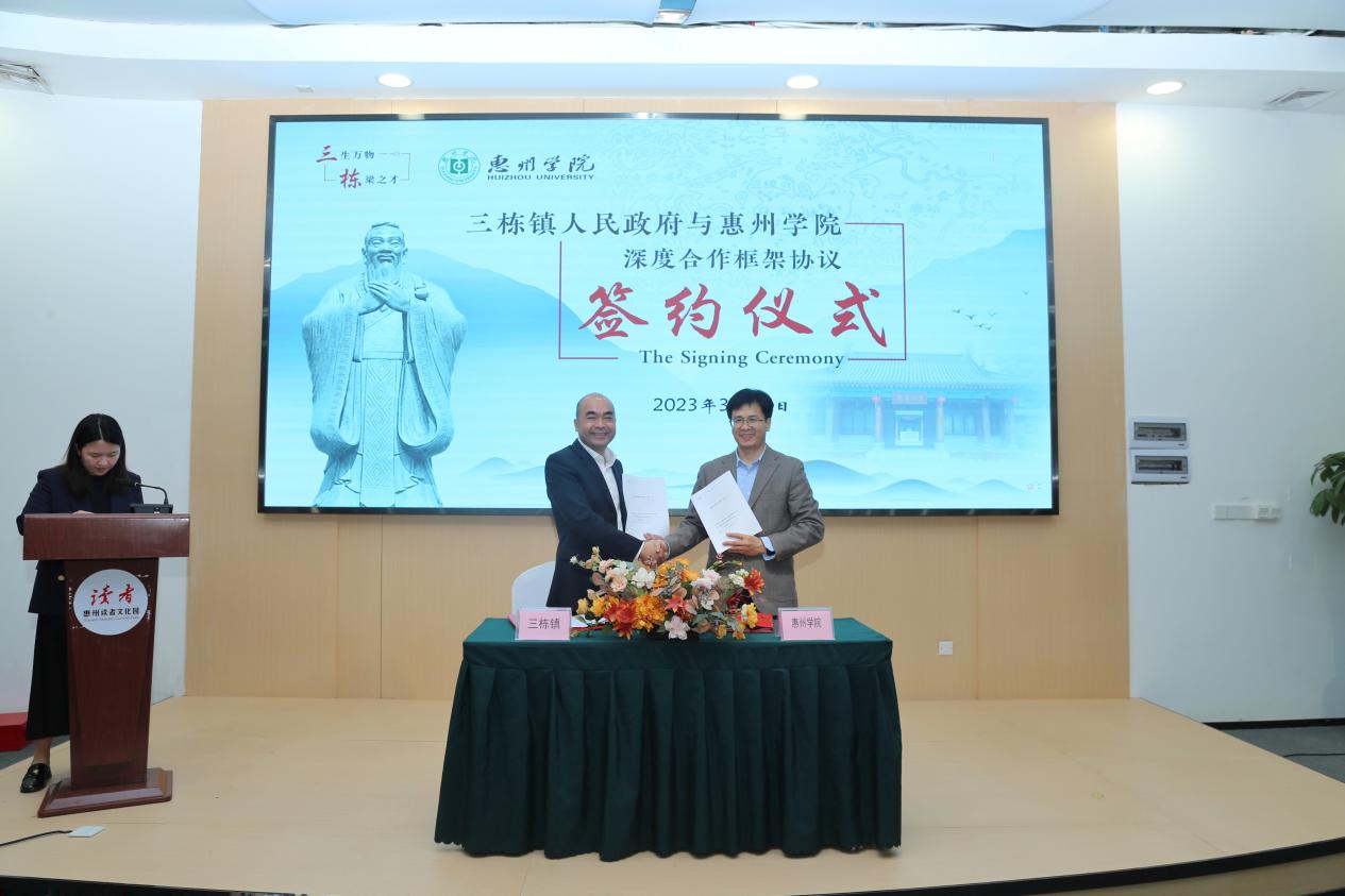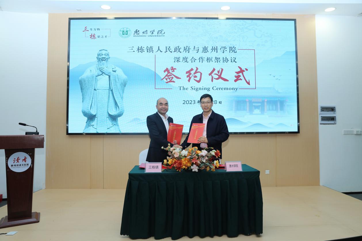 郑文表示,在广东省委实施“百县千镇万村高质量发展工程”促进城乡区域协调发展的大背景下,本次与三栋镇政府的深度合作将作为惠州学院服务基础教育的示范工程,举全校之力深入推进与三栋镇的密切合作,精准对接三栋教育的迫切需求,推动三栋的教育向均衡化、优质化、特色化转变。与此同时,也能为惠州学院的学生提供一系列密切接触基础教育实践、提升教育服务的机会。