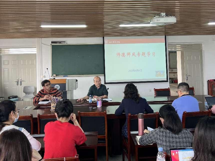 为认真贯彻落实党的二十大精神,落实立德树人的根本任务,进一步加强师德师风教育,引导广大教师恪守职业道德,4月6日早上,教育科学学院在旭日教学大楼621会议室召开师德师风专题学习会议,学院全体教职工参加本次会议。会议由党总支书记谢伟强主持。