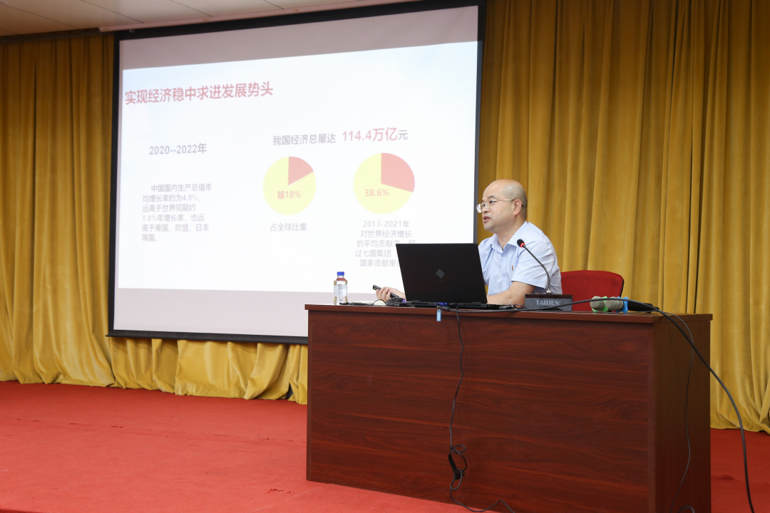 在讲座中,谢伟强书记首先从我国经济实力上新台阶、民主政治全面推进、文化自信明显增强、人民生活持续改善、美丽中国步伐坚实等五个方面阐述新时代取得的辉煌成就。然后提出新形势下我国仍面临安全挑战之多、原因分析及国内疫情风险的困境与挑战。最后就如何在新的赶考路上写好“青春”答卷给在场的学生,从要树立远大理想、厚植爱国情怀、懂感恩会珍惜、练就过硬本领、守住底线保安全等五个方面寄予期望,自觉把实现中华民族伟大复兴作为自己的首要任务,在第二个百年奋斗目标新的赶考之路上,在青春的赛道上,坚守初心,奋力跑出最好的成绩,向党和人民交一份不负韶华、不负时代、不负人民的新时代答卷!