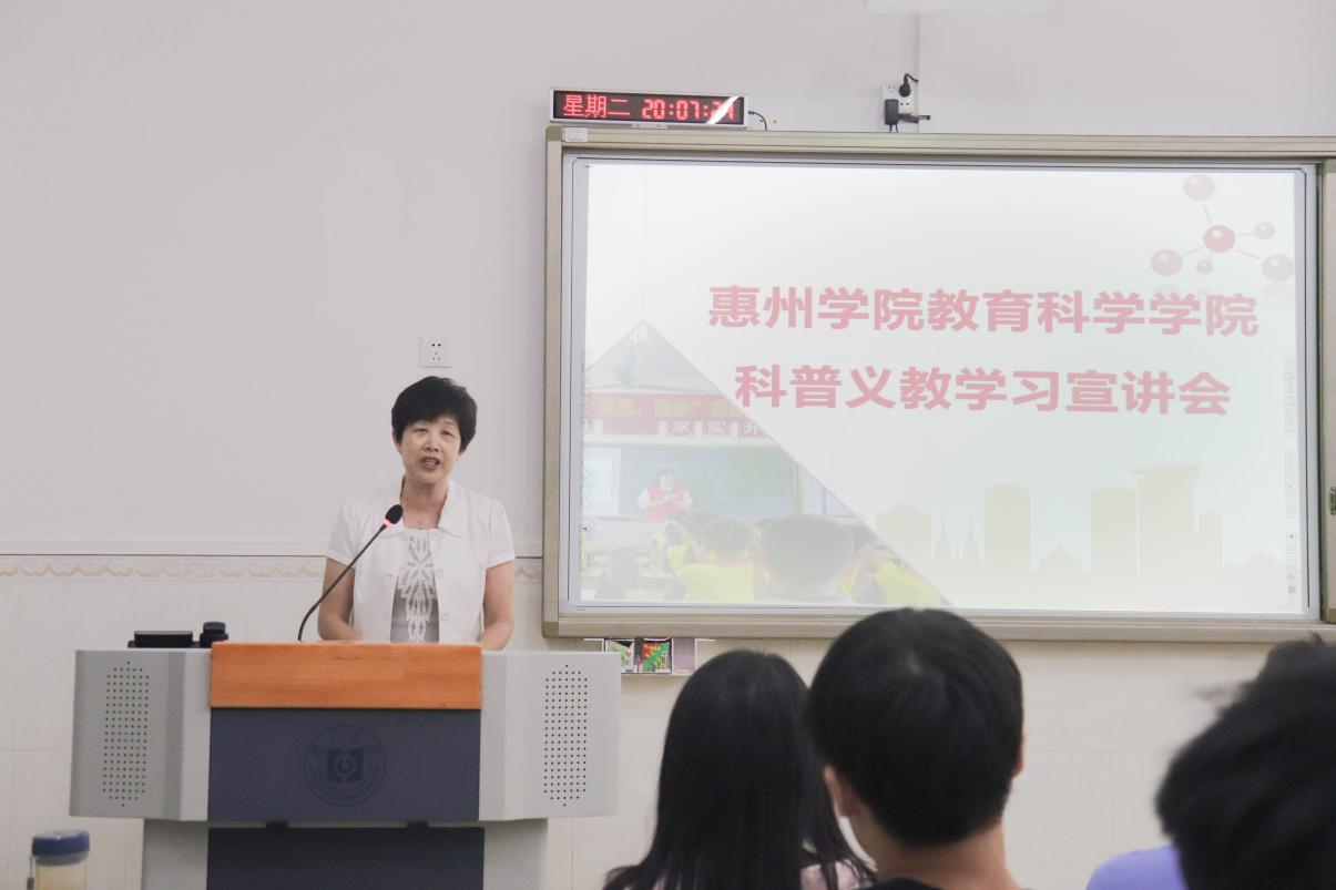 刘惠茹副教授也讲述了自己创办科普义教活动的初衷,并结合多年的实践探索,通过科普义教,让学生下沉到真实课堂开展实践教学,在提升社会责任感的同时也极大提高了师范生的教学技能水平,希望同学们要牢牢把握机会,积极参与科普义教实践活动。