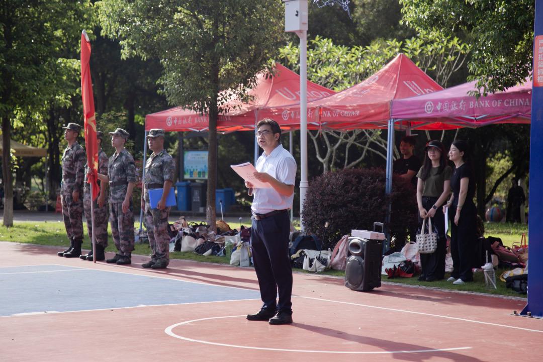 最后,由刘华副书记作开训动员讲话。他强调,开展大学生军训,是贯彻落实习近平新时代中国特色社会主义思想和强军思想,全面贯彻党的教育方针、新时代军事战略方针和总体国家安全观的需要。同时,也对学生们提出了几点希望:第一,要耐得辛苦,不怕苦不怕累,认真对待军训。第二,一切行动听指挥,要做到服从命令,严守纪律,争当标兵。第三,要发扬集体主义精神和爱国主义精神。第四,在军训中,各排要及时做好宣传报道工作,尤其是在军训中涌现出来的好人好事,要多加表扬、激励,鞭策后进,鼓舞士气,为营造良好的班风、学风打下坚实基础。