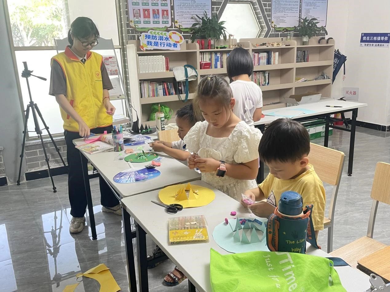 在科普课上,我有机会与孩子们分享知识,讲解有关科学和自然界的有趣事实。能够激发他们对科学的好奇心并帮助他们理解复杂的概念是一种极为有趣和有意义的体验。手工课上,我带领孩子们制作手工作品,这也是我主要负责的环节。其中有很多孩子的年龄偏小,并不能非常标准的完成一些剪裁和折叠任务,但也正因为如此,他们卷出来了各种不同样式的花朵,也正印证了创造没有标准答案,我与孩子们一起享受着创造的乐趣,并见证他们成功完成自己的作品。这样的经历让我感到非常鼓舞和满足。