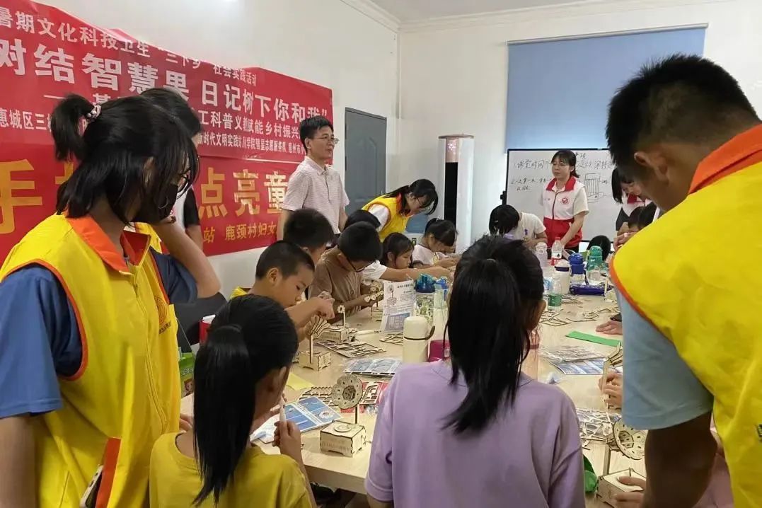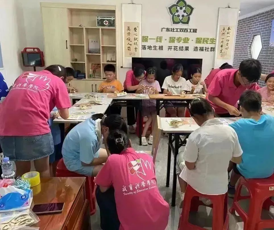 为深入学习贯彻习近平总书记关于青年工作的重要思想,让热血青春与科学教育赋能乡村振兴,在教育科学学院党总支的号召下,学院团委组织“益启学“义教队于2023 年 7 月—2023 年 8 月在惠州市三栋镇鹿颈村开展为期一个月的暑期社会实践活动。益起学“义教队招募志愿者46名及部分“三下乡”团队,服务对象为6-12岁儿童超200人,义教活动涵盖美术、音乐、手工、舞蹈、学科辅导等,拓宽他们的知识面,激发他们对科学知识的兴趣。丰富的游戏活动陪伴他们欢乐的度过暑假时光。