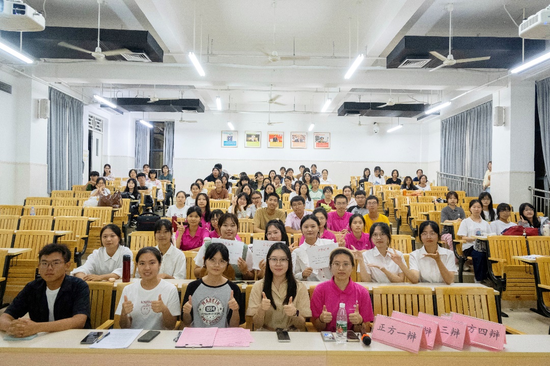 本次决赛获得冠军的队伍为正方23学前一班,亚军队伍为反方23学前三班,季军队伍为23小教三班,同时对本次比赛的最佳辩手邓舒琪、张可欣、陈晓雯、陈永薇、熊睿同学予以表彰。辅导员老师和教育科学学院辩论队成员为新秀们颁奖并合影留念。