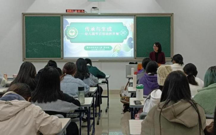 为了加深学前教育专业学生对幼儿园环境创设和幼儿园节日活动的认识,并使学科理论与实践相结合,学院邀请了惠州市机关幼儿园副园长罗欢梅于2023年10月25日和12月6日到惠州学院为 22级学前教育1班学生进行嵌入式课堂教学。