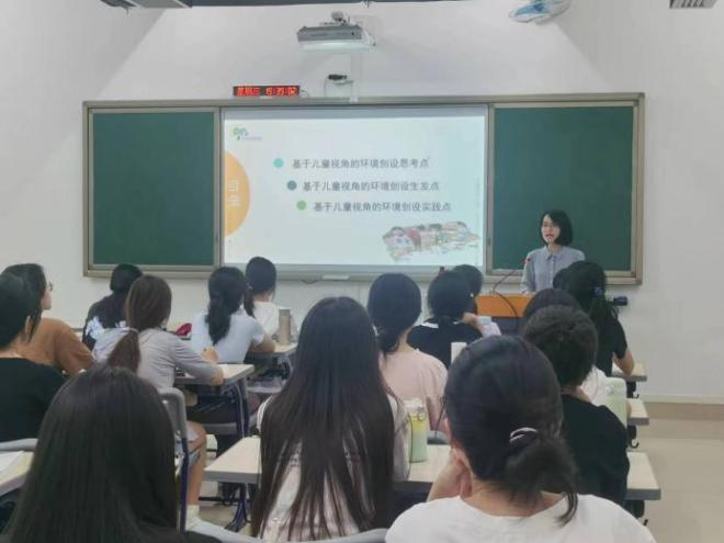 10月25日,罗园长以“基于儿童视角,创设思考和变化的环境”为主题进行讲解。罗园长基于儿童视角的环境创设思考点、生发点、实践点,以惠州市机关幼儿园为例,结合图片和视频,提出教师在进行环境创设时应该想儿童所想、见儿童所见、知儿童所思。罗园长还强调,环境不仅是一门隐性课程,也是孩子们的第三位老师。通过本节课,同学们都对幼儿园的环境创设有了初步的了解,明白了环境对幼儿的重要性,在环境创设中,教师应该让幼儿参与进来,支持儿童积极主动地学习。