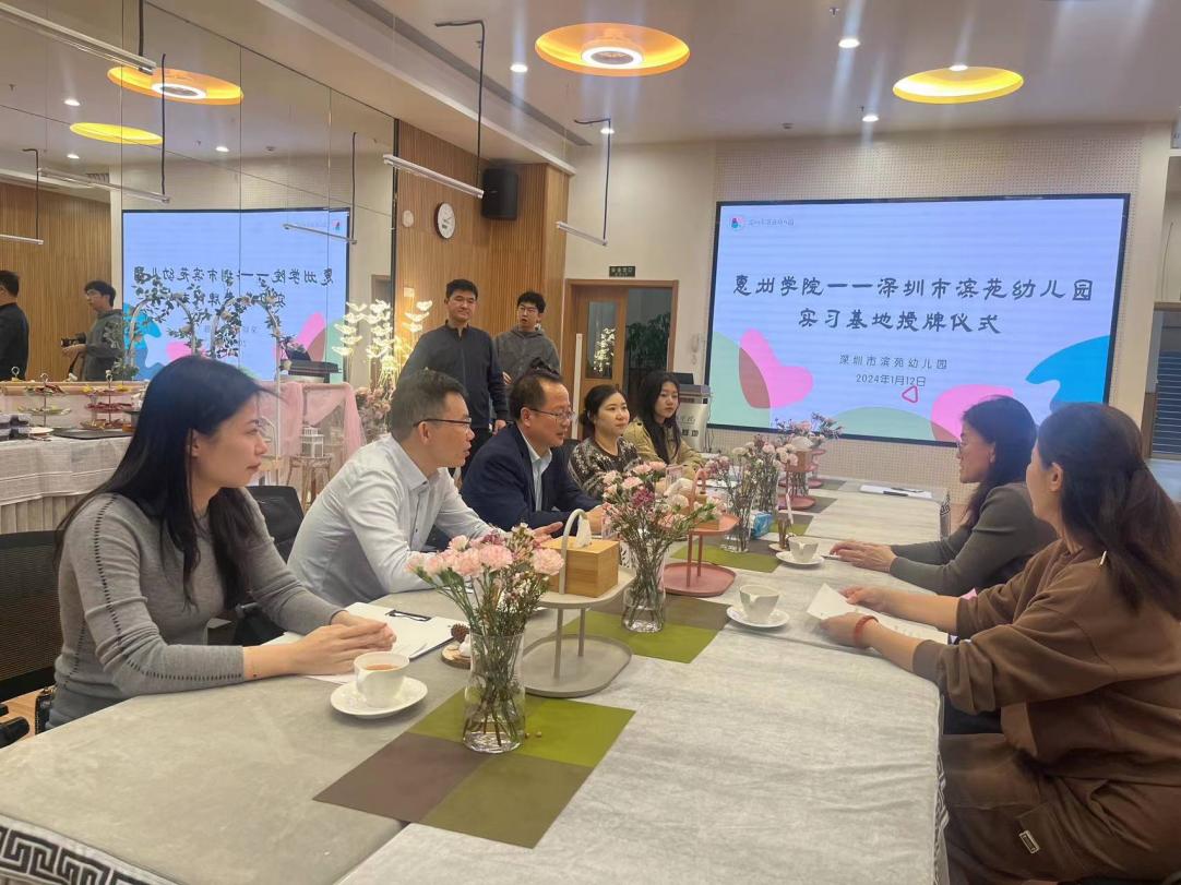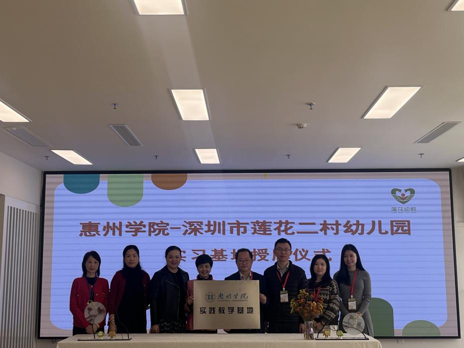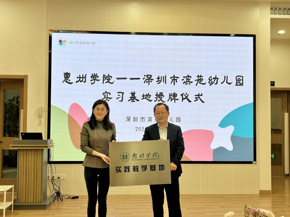 为进一步深化教育科学学院“U-G-K”人才培养机制,做好学前教育专业学实践教学工作,落实学前教育专业人才培养目标,惠州学院教育科学学院副院长肖崇好一行于2024年1月12日前往深圳莲花二村幼儿园进行实践教学基地续签约授牌仪式,到深圳滨苑幼儿园进行惠州学院实践教学基地签约授牌仪式。