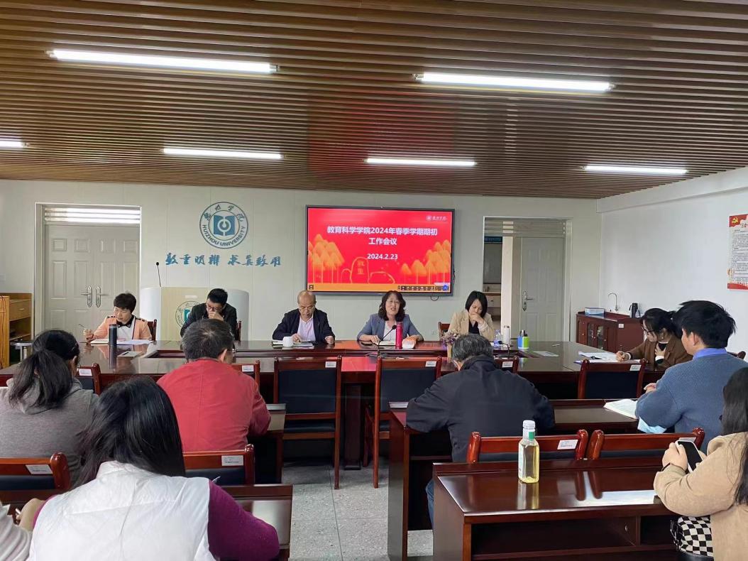 新年伊始,2024年2月23日上午,教育科学学院在旭日楼621会议室召开春季学期工作推进会,对新学期有关工作作出相关部署。学院全体教师参加了本次会议。