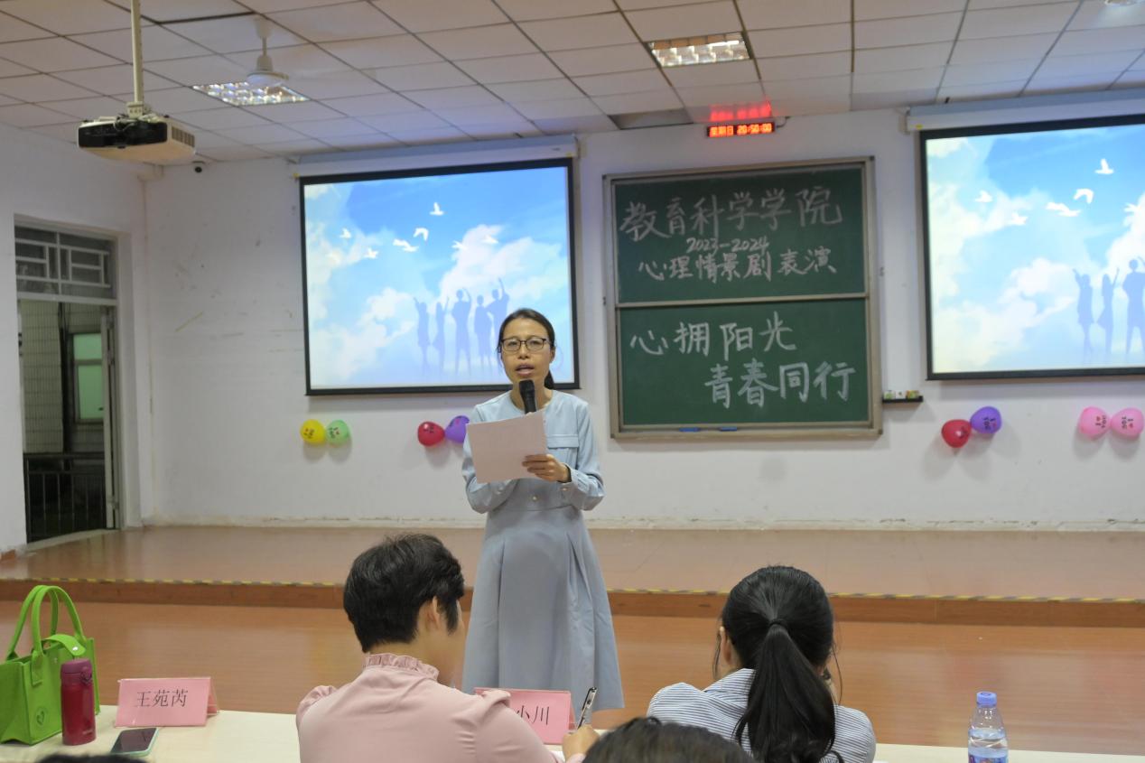 3月24日晚,教育科学学院在田家炳楼举办了主题为“心拥阳光,青春同行”的心理情景剧比赛。教育科学学院党总支副书记钟小川、心理中心王苑芮和辅导员张磊作为评委老师出席了本次比赛现场。