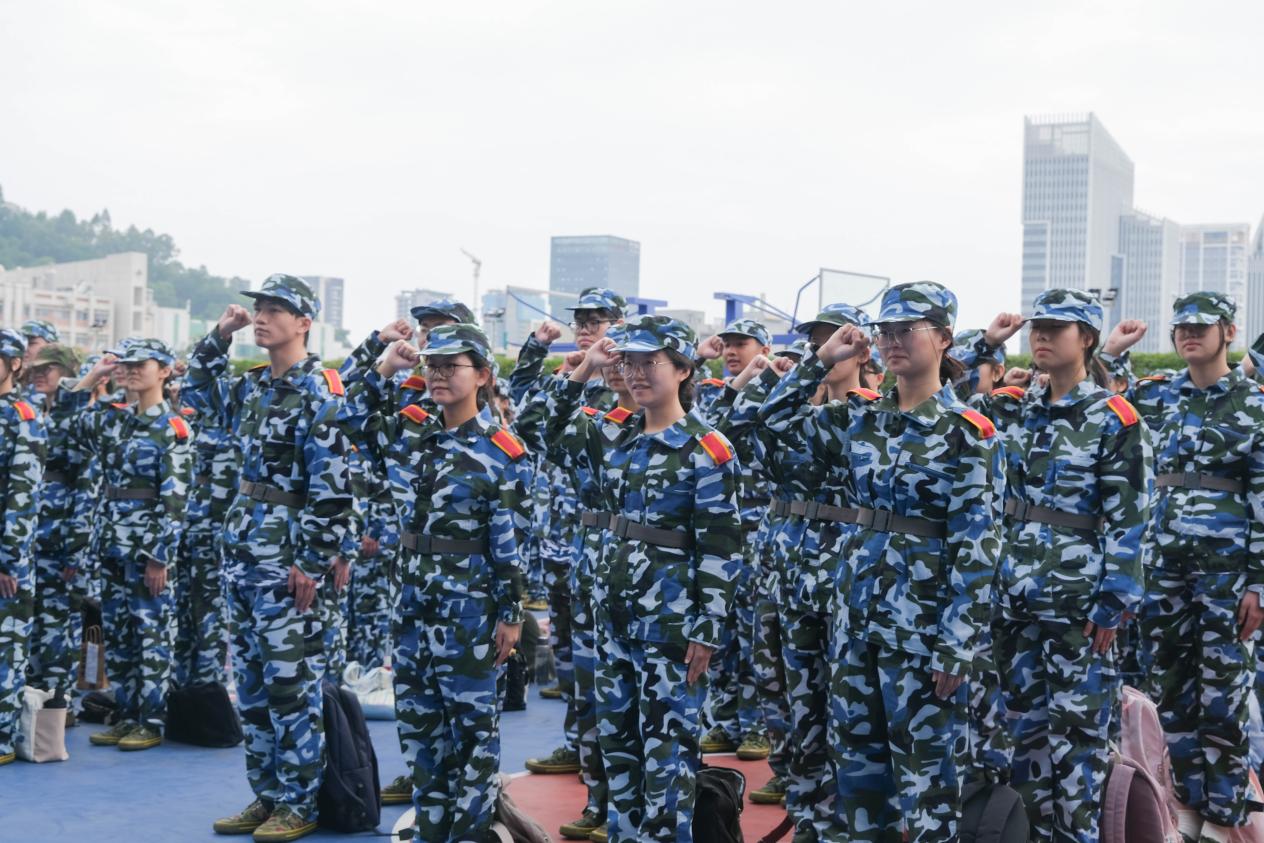 钟小川向学院新生介绍了十七连的教官及参加开营式领导、老师。随后,党委书记谢伟强向连长进行了授旗。紧接着,全体新生进行了庄严的宣誓。同学们高举右手,庄严宣誓,誓言铮铮,表达了同学们对军训的坚定信心和决心。十七连连长刘小亮进行了发言,他表示,全体教官将严格按照军训计划,科学施训、文明施训,确保军训质量。同时,连长也要求同学们认真对待军训,听从指挥,遵守纪律,努力提高自身的军事素质和综合能力。