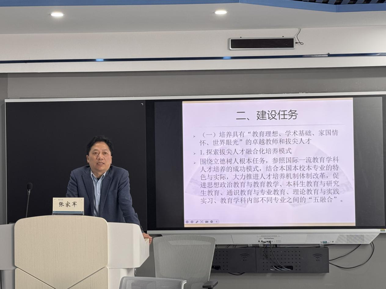 张家军教授对学校获得硕士招生表示祝贺,围绕从学科建设发展规划、师资队伍建设、人才培养、科研平台建设、国际合作交流等方面详细介绍了西南大学教育学“双一流学科”建设的实践和经验。
