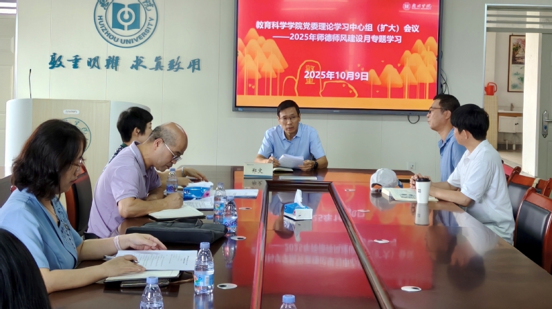 为深入学习贯彻教育家精神,切实加强教师队伍师德师风建设,引导广大教师坚定教育理想、涵养教育情怀。10月9日上午9:00,教育科学学院在621会议室召开党委理论中心组学习(扩大)会议,开展2025年师德师风建设月专题学习。会议由学院党委书记谢伟强主持,副校长郑文出席,学院全体教职工参加。