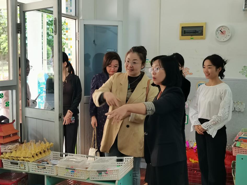 环境作为隐性课程,是本次指导的重点内容。罗晓敏副教授带领团队对两所幼儿园的环境创设进行实地把脉,重点指导“浸润式”美育环境的营造。她指出,美育环境不仅要追求视觉上的美感,更要突出教育功能,使每一处空间都能支持幼儿的探索、审美与表达。她在空间布局优化、环境审美提升及增强幼儿互动性等方面,提出了系统而具体的实施路径。专家团队一致认为,应推动美育理念全面融入园本课程与环境建设,实现“课程与环境”一体化发展,从而系统提升园所的育人氛围与文化品质。